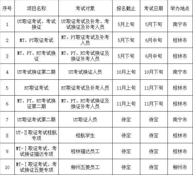 根据自治区市场监督管理局授权,按照《特种设备无损检测人员考核规则》( TSG Z8001-2019) 的规定,我协会开展2026年特种设备无损检测常规四项〔射线胶片照相检测(RT)、脉冲反射法超声检测(UT)、磁粉检测(MT)、渗透检测(PT)〕Ⅰ级和Ⅱ级人员的取换证考试及免考换证活动,现将有关事项通知如下: